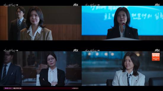 18일 방송된 JTBC 토일드라마 ‘에스콰이어: 변호사를 꿈꾸는 변호사들’(이하 ‘에스콰이어’)에서 김여진은 석훈(이진욱 분)의 사수이자 멘토인 권나연 역을 맡아 냉철한 판단력과 품격 있는 리더십을 발휘했다.