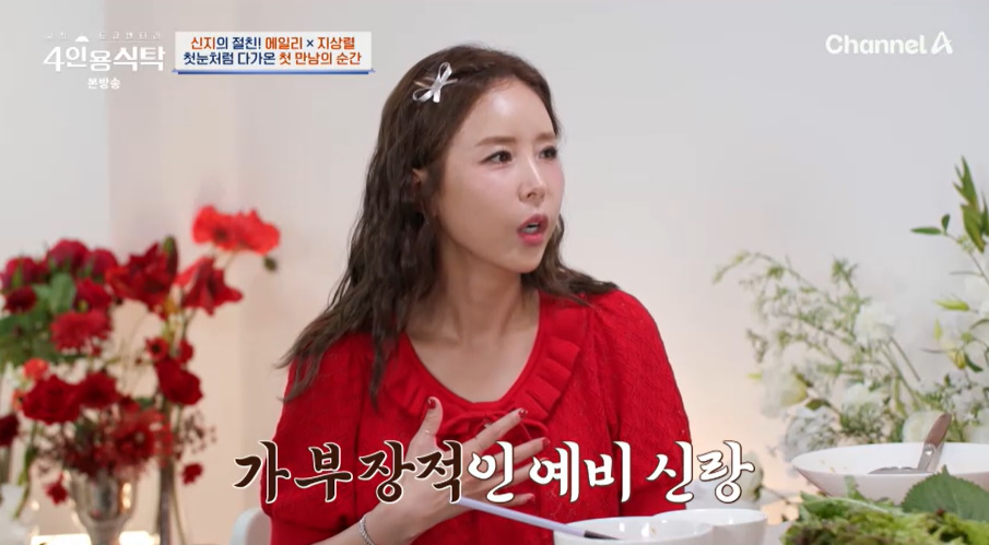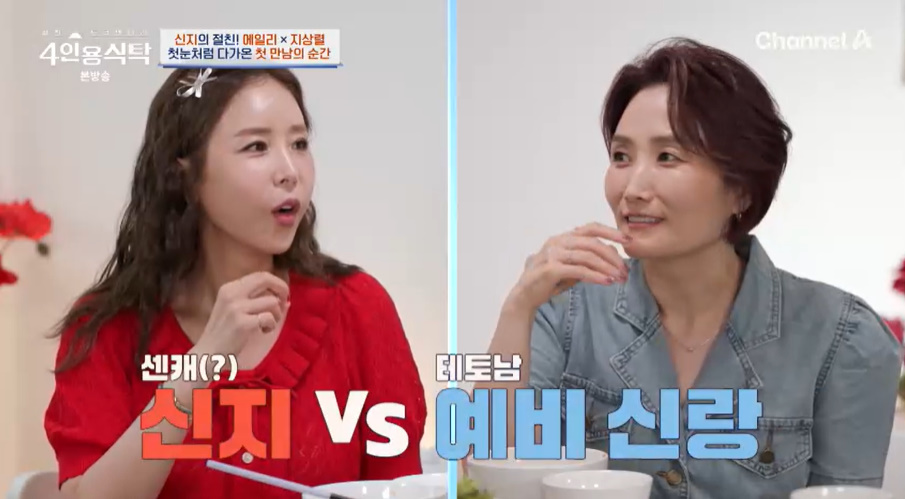 18일 방송된 채널A '절친 토큐멘터리 4인용 식탁'에서는 코요태 신지가 절친 에일리, 박경림, 지상렬과 만남을 가졌다.