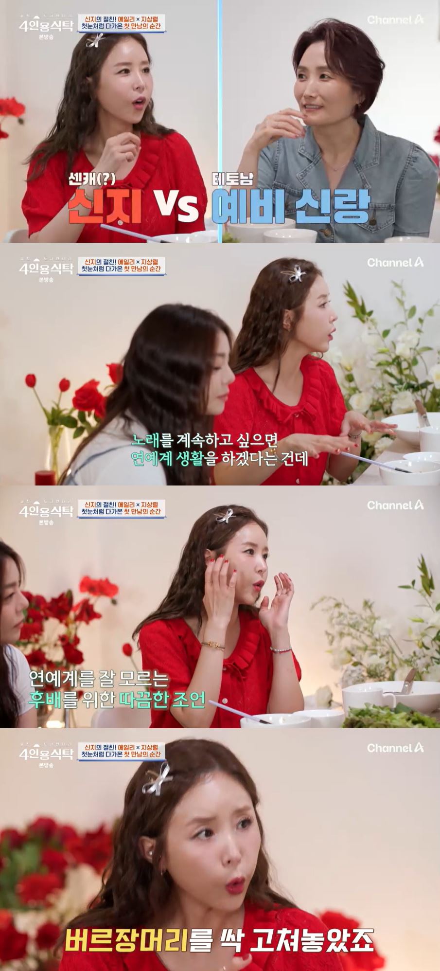 18일 방송된 채널A '절친 토큐멘터리 4인용 식탁'에는 MC 박경림과 코요태 신지, 가수 에일리, 개그맨 지상렬이 출연했다.