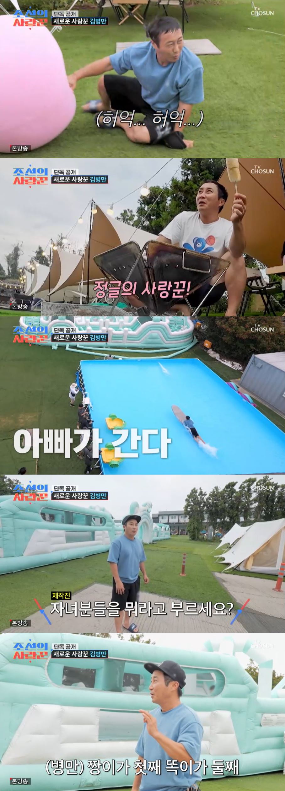 특히 김병만은 자녀들을 위해 몸으로 놀아주고, 직접 고기를 구워주는 모습도 보여줬다. 이에 육아로 체력이 방전되기도. 김병만은 "힘들다"면서도 "근데 행복한 힘듦이다"라고 말했다.