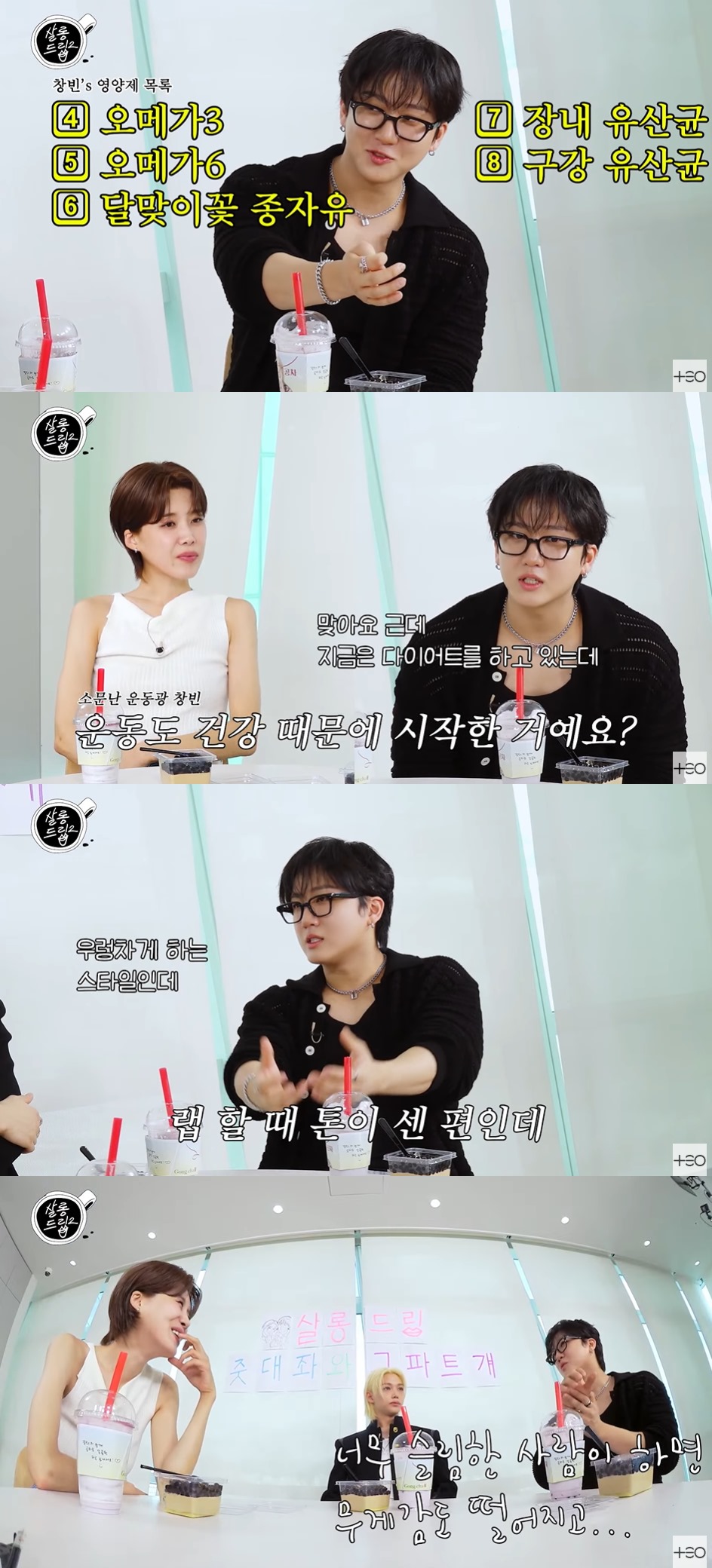 또 장도연이 원래 운동을 좋아했냐고 묻자, 창빈은 "지금은 컷팅을 하고 있는데 그때는 벌크업이 되게 하고 싶었다. 랩 톤이 센 편이고 우렁차게 하는 스타일인데 너무 슬림한 사람이 하면 무게감도 떨어지고 그렇게 증량하게 됐는데 너무 중독이 됐다"라고 털어놨다.