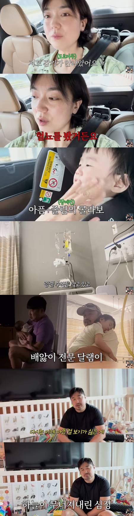 이어 "장염이 2주째 계속되고 아침에 혈뇨를 봤다. 콜라 색깔의"라며 "탈수 의심이 된다고 해서 진단서를 받아서 대학병원에 가고 있다. 가서 검사를 해봐야 할 것 같다. 오늘 아침에도 우유 먹고 토하고. 어젯밤에도 토하고"라며 상황을 설명, "돌치레를 아주 제대로 하네"라며 걱정을 내비쳤다.