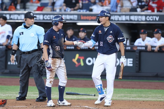 두산 벤치는 오명진의 타석에서 대타 김인태를 투입했다. 김인태는 2루수 강습 땅볼을 때려 역전 타점을 올렸다.