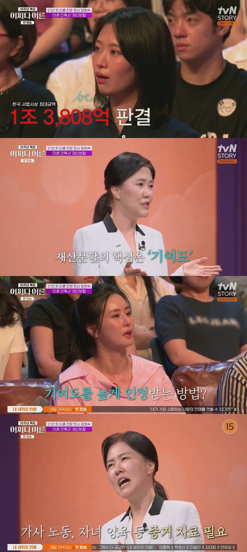 이날 정현숙 판사는 재산분할에 관해 이야기하며 "세기의 이혼이라 불린 재벌가의 이혼 소송이 진행 중이다. 무려 1조 3,808억이 재산 분할 금액이었다"라고 언급했다.
