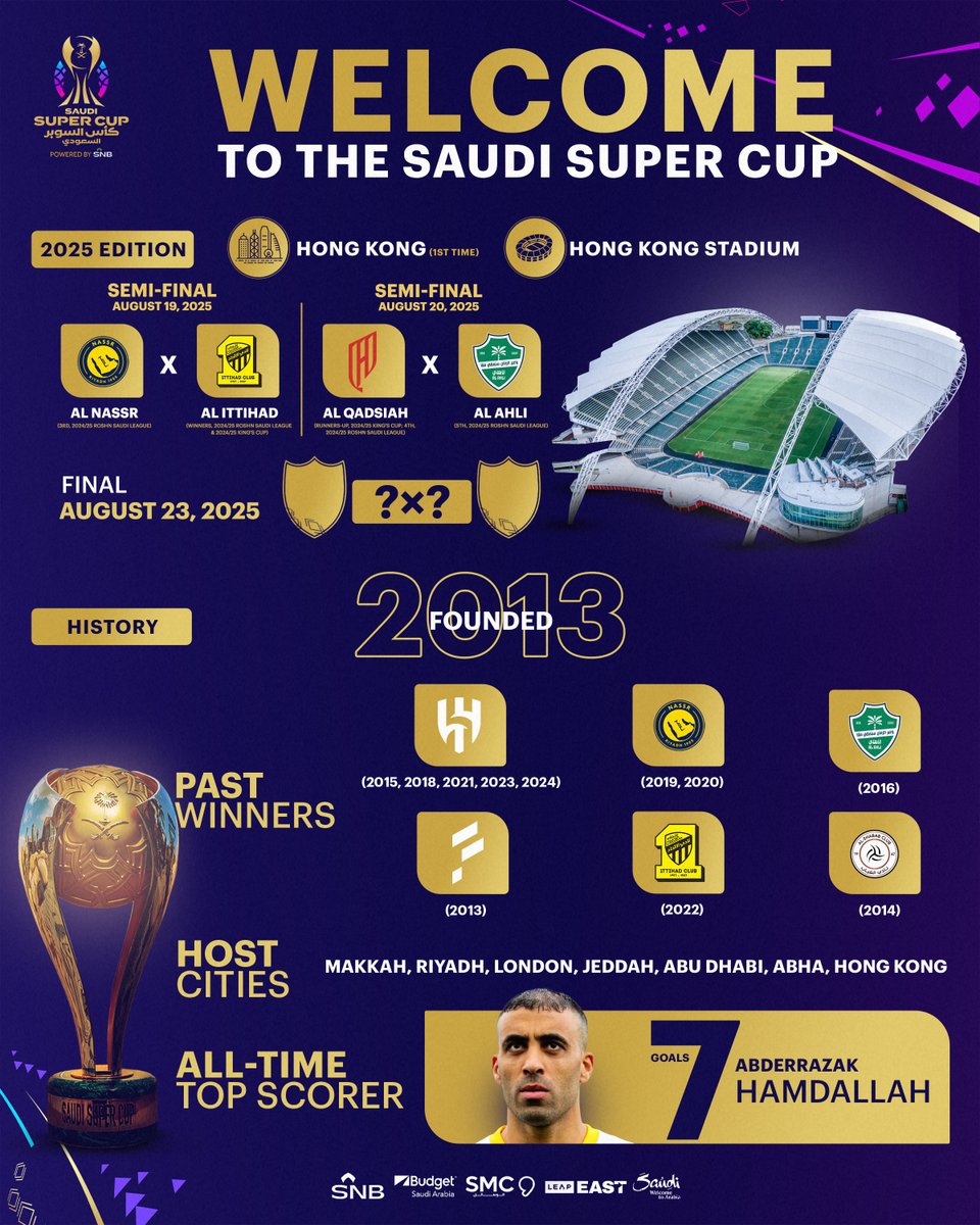 사우디축구연맹은 지난 6월 4만명을 수용할 수 있는 홍콩스타디움에서 사우디 슈퍼컵을 열기로 발표했다. 홍콩스타디움은 과거 한국 대표팀이 홍콩 구정대회를 곧잘 참가하면서 한국 축구팬들에게도 잘 알려진 곳이다. 알나스르와 알힐랄, 알콰드시아, 알아흘리가 참여하는 이번 슈퍼컵은 사상 최초로 사우디아라비아 밖에서 벌어졌다.