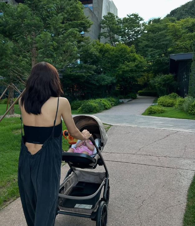 특히 출산 후에도 여전히 마른 몸매를 유지한 손담비의 모습이 시선을 사로잡았다. 블랙 슬리브리스 보디슈트를 입고 유모차를 끄는 모습에서는 군살 없는 팔과 어깨 라인이 돋보였고, 자연스러운 산책 중에도 모델 같은 비주얼을 뽐냈다.