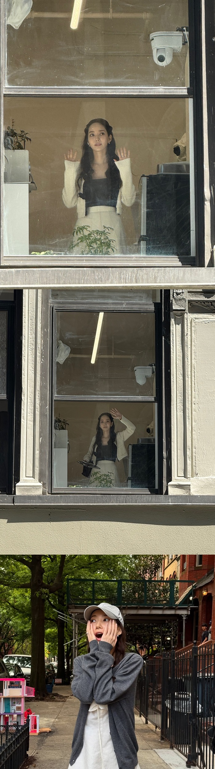 공주님 같은 미모를 자랑하며 상큼한 표정을 지어보인 박민영은 카메라가 가득한 공간 속에서 창 밖 카메라를 보며 손을 흔들어 눈길을 끈다.