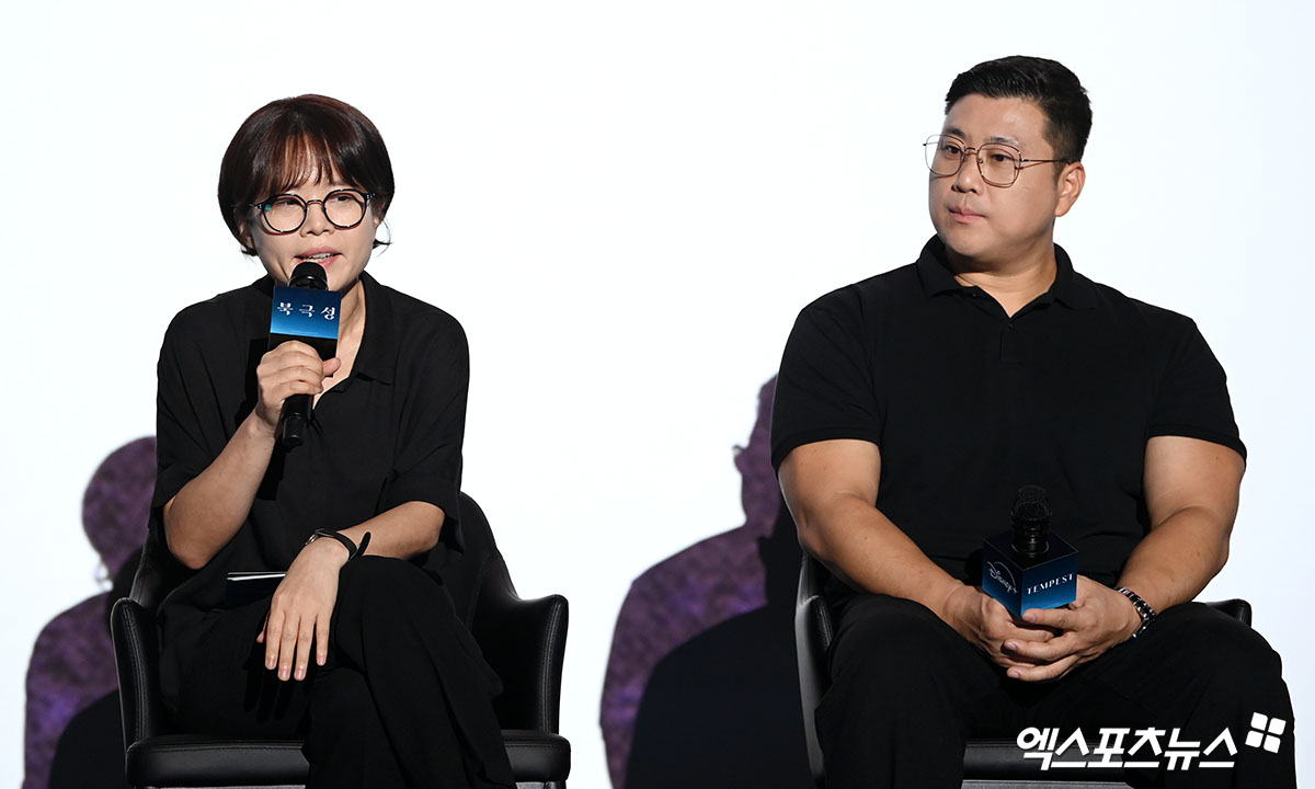 '북극성'의 김희원 감독은 "이 작품은 어떤 이야기가 하고 싶은지에서 시작됐다. 개인적으로 '인물이 인생을 걸고 고군분투하는 이야기'를 좋아한다. 이 이야기를 대중적으로 풀어보려는 작업을 하면서 인물들 간의 멜로 텐션이 강화가 많이 됐고, 효과가 증폭될 수 있게 많은 고민과 노력을 기울였다. 처음에는 사이즈가 큰 대작에 집중하지 않았는데 살을 붙이고 아이디어를 붙이다 보니 이야기의 규모가 커지게 됐다. 정교하고 큰 액션신이 많이 등장하게 됐다. 기존 방식이 아닌 새로운 방식을 접하게 됐고 너무도 당연하게 허명행 감독님께 공동 연출을 제안하게 됐다"고 밝혔다.