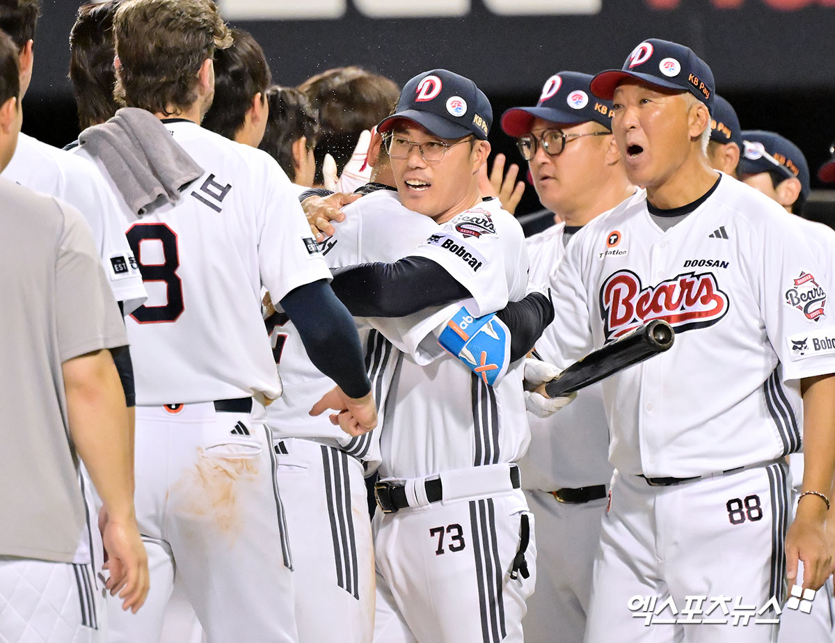 조 대행은 "처음엔 어떤 방향으로 가야 할지 계산조차 버거웠다. 그런데 양의지를 중심으로 정수빈, 김재환, 제이크 케이브 같은 핵심 선수들이 중심을 잡아줬다. 덕분에 팀이 흔들리긴 해도 완전히 휘청이지 않았다. 그 과정에서 젊은 선수들이 조금씩 자리를 잡을 수 있었고, 선배들의 도움이 컸다"고 바라봤다.