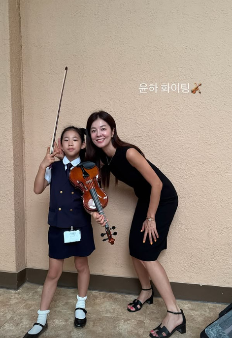또 다른 사진에서는 환한 미소를 지으며 바이올린을 든 윤하와 나란히 포즈를 취하며 “윤하 화이팅”이라고 응원 메시지를 전했다.