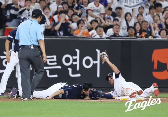양의지 1루→3루 질주 아웃, 왜 무리했을까?…조성환 대행 오히려 박수 "과감히 한 베이스 더, 그게 베어스 야구" [대전 현장]