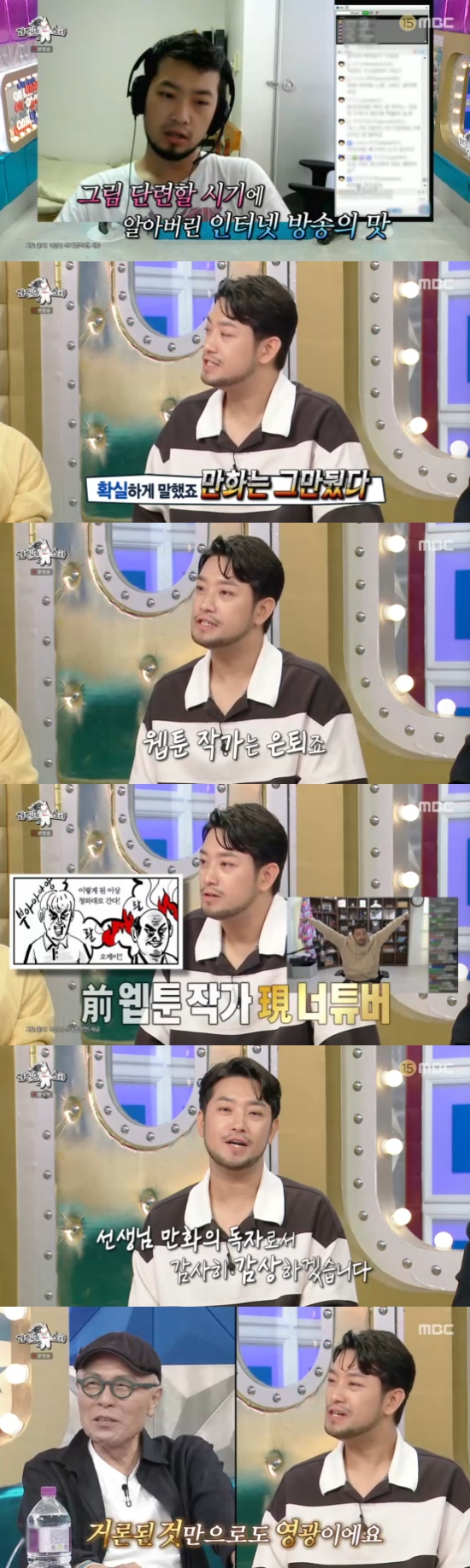 이어 "허영만 선생님께서 '라스'에 출연하셨을 때 저를 언급해주신 걸 봤다. 감사하면서도 제가 그만 둔 이유를 정확하게 보셔서 '대가는 다르다'라는 것을 느꼈다. 만화계에서는 전설이시라, 거론된 것만으로도 영광이었다"면서 "만화를 그릴 생각은 없다"고 전했다.