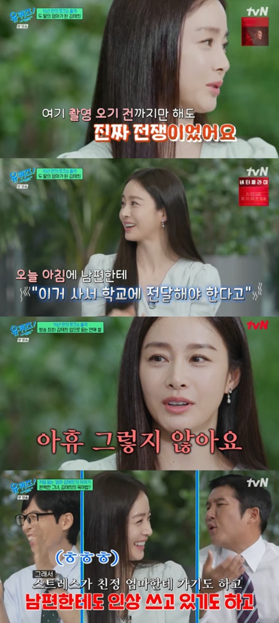 20일 방송된 tvN 예능 프로그램 '유 퀴즈 온 더 블럭'에는 배우 김태희가 15년만에 토크쇼에 출연해 외모서부터 육아 근황까지 진솔한 이야기를 나눴다.