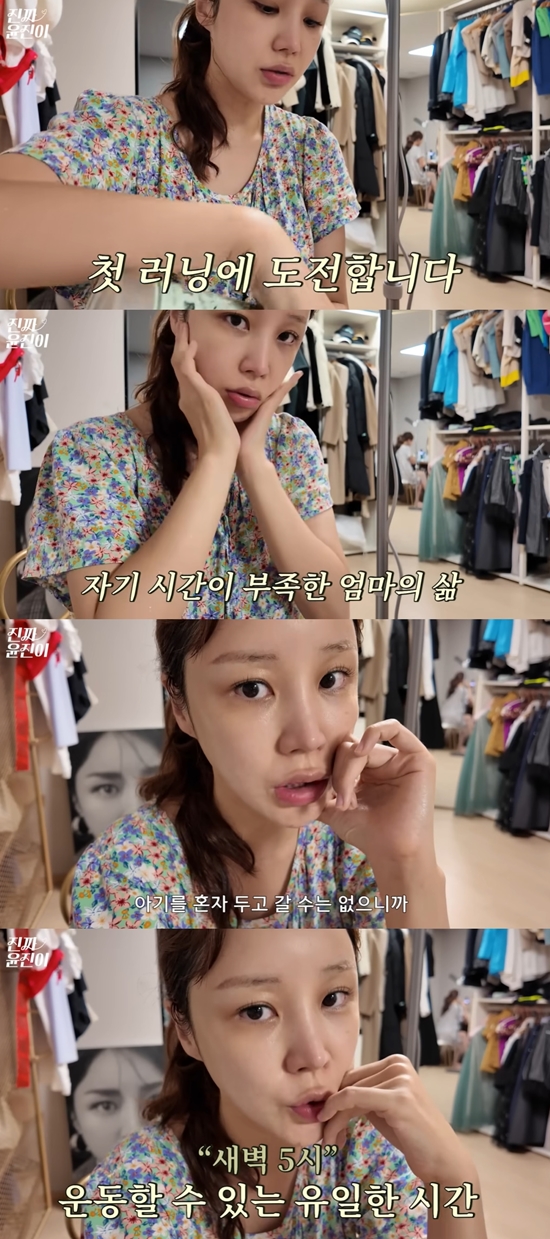 이어 그는 "아기 키우고 하다 보니까 내 운동할 시간이 너무 없다. 아기를 혼자 두고 갈 수는 없으니까 '남편이 있는 시간이 몇 시지?' 생각해서 이 시간을 고르게 됐다. 온전히 혼자만의 운동을 하려면 어쩔 수 없다"라며 일찍부터 운동에 나서는 이유를 밝혔다.