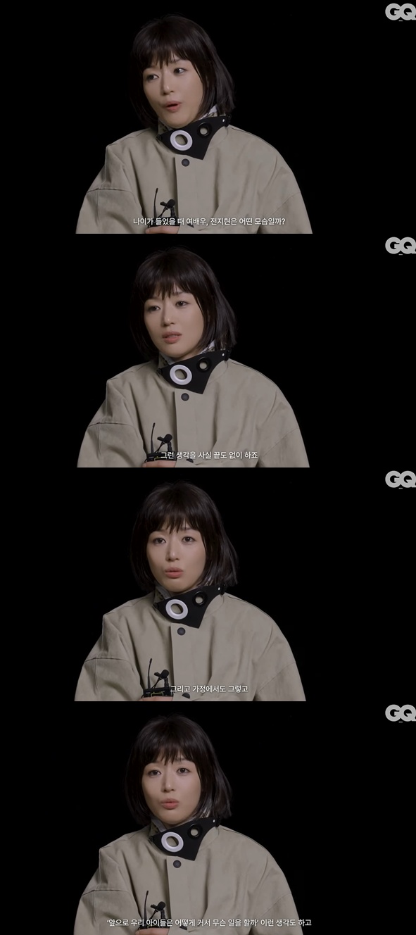 평소 하는 생각에 대해서 그는 "'나이가 들었을 때 여배우, 전지현은 어떤 모습일까?' 그런 생각을 사실 끝도 없이 한다"며 "가정에서도 그렇고, '앞으로 우리 아이들은 어떻게 커서 무슨 일을 할까?' 이런 생각도 한다"며 "결과적으로는 '오늘 할 수 있는 거를 잘 하자' 이런 생각을 사실 더 많이 한다"고 털어놨다.