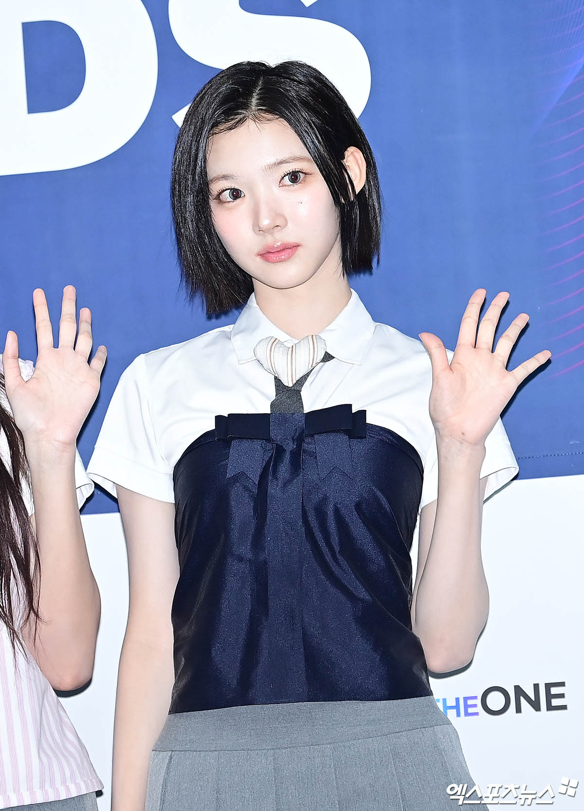 이날 행사에 참석한 하츠투하츠 지우가 포토타임을 갖고 있다.