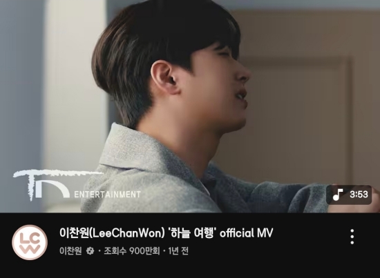 (엑스포츠뉴스 이정범 기자) 이찬원의 '하늘여행' 공식 뮤직비디오가 조회수 900만 뷰를 돌파했다.