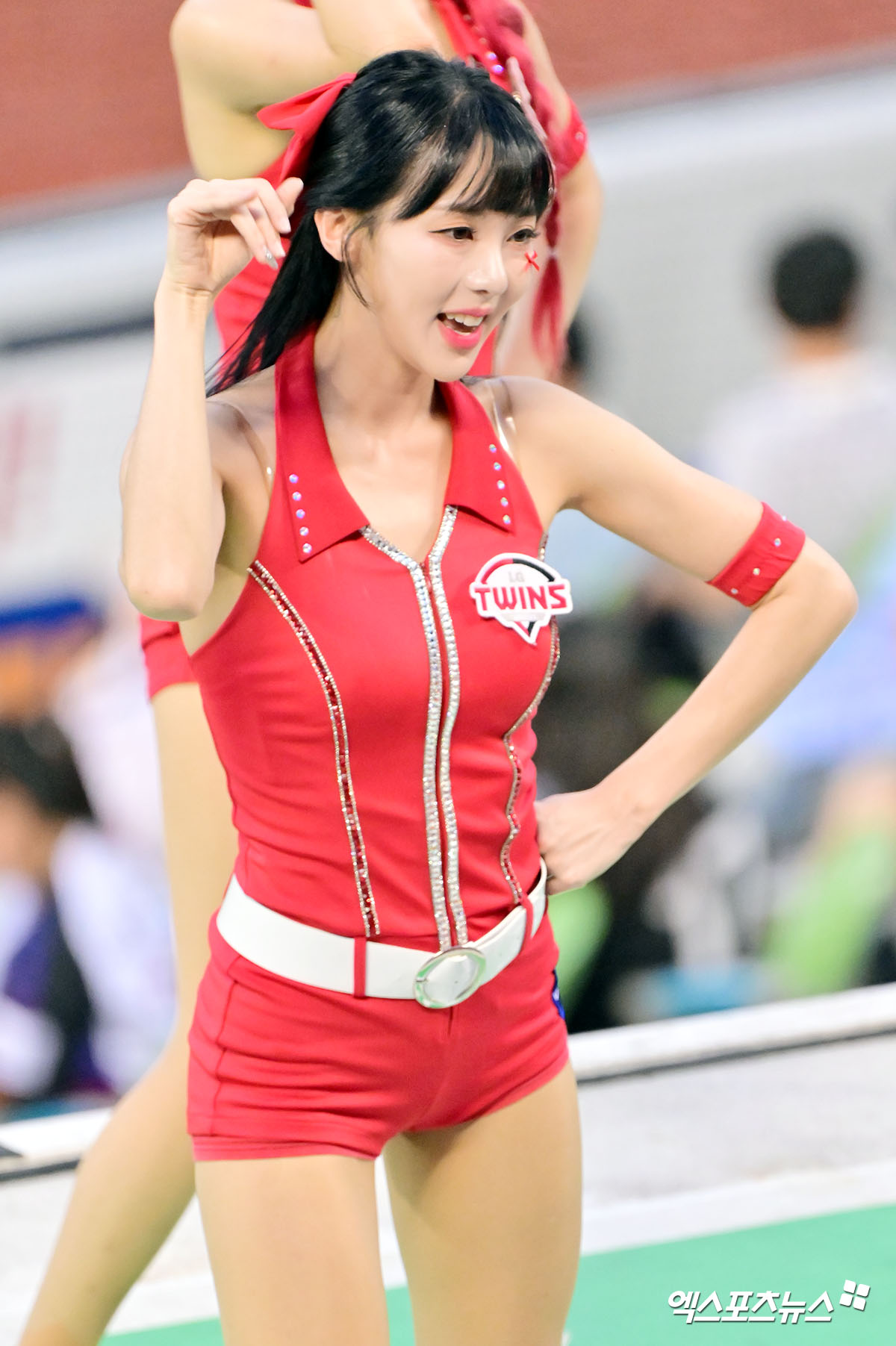 (엑스포츠뉴스 잠실, 김한준 기자) 21일 오후 서울 송파구 잠실야구장에서 열린 '2025 신한 SOL Bank KBO리그' 롯데 자이언츠와 LG 트윈스의 경기, 차영현 치어리더가 멋진 공연을 선보이고 있다.