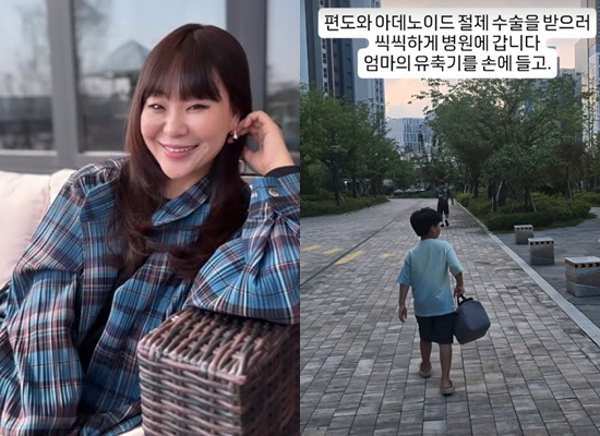 정주리는 22일 자신의 SNS에 “전날 밤 도원이는 도원이가 좋아하는 육회와 산낙지를 먹고… 편도와 아데노이드 절제 수술을 받으러 씩씩하게 병원에 갑니다. 엄마의 유축기를 손에 들고”라는 글과 함께 사진을 게재했다.