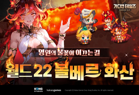 (엑스포츠뉴스 유희은 기자) 카카오게임즈(대표 한상우)는 22일, 미국 개발사 콩 스튜디오(대표 원, Won)가 개발한 모바일 RPG ‘가디언 테일즈’에 신규 월드 22 및 영웅을 업데이트했다고 밝혔다.