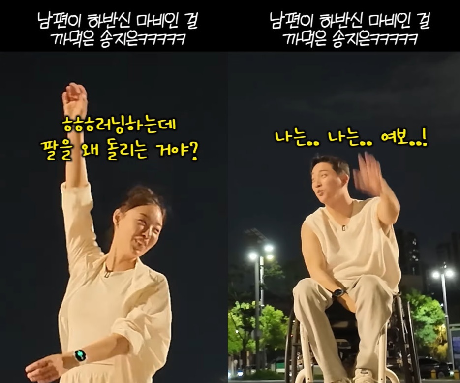 (엑스포츠뉴스 오승현 기자) 하반신 마비 유튜버 박위가 아내이자 가수 송지은의 발언에 당황한 일상을 전했다.