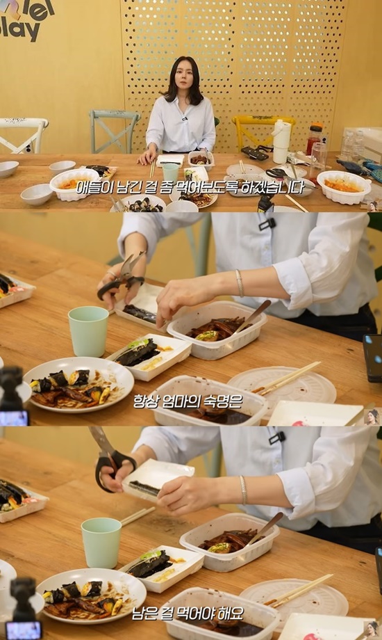 이후 아이들이 남긴 음식이 놓여진 테이블 앞에 앉은 한가인은 "그럼 이제 저는 아이들이 남긴 것을 먹어보겠다. 원래 이게 엄마들의 숙명이다. 남을까봐 조금 시키면 모자라고, 많이 시키면 또 남더라"고 담담하게 말했다.