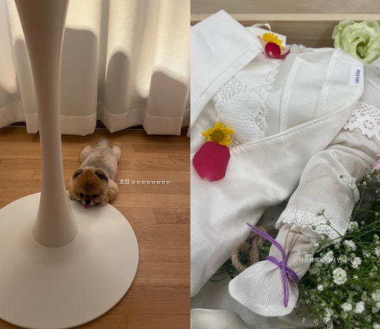 추억이 된 반려견의 모습에 감정이 올라와 "흐엉ㅠㅠㅠ"이라고 밝힌 큐리는 마지막으로 반려견에게 입히기 위해 준비한 듯 보이는 옷을 공개했다. 큐리는 "다음 생에도 다시 만나자"라며 애정을 보였다.