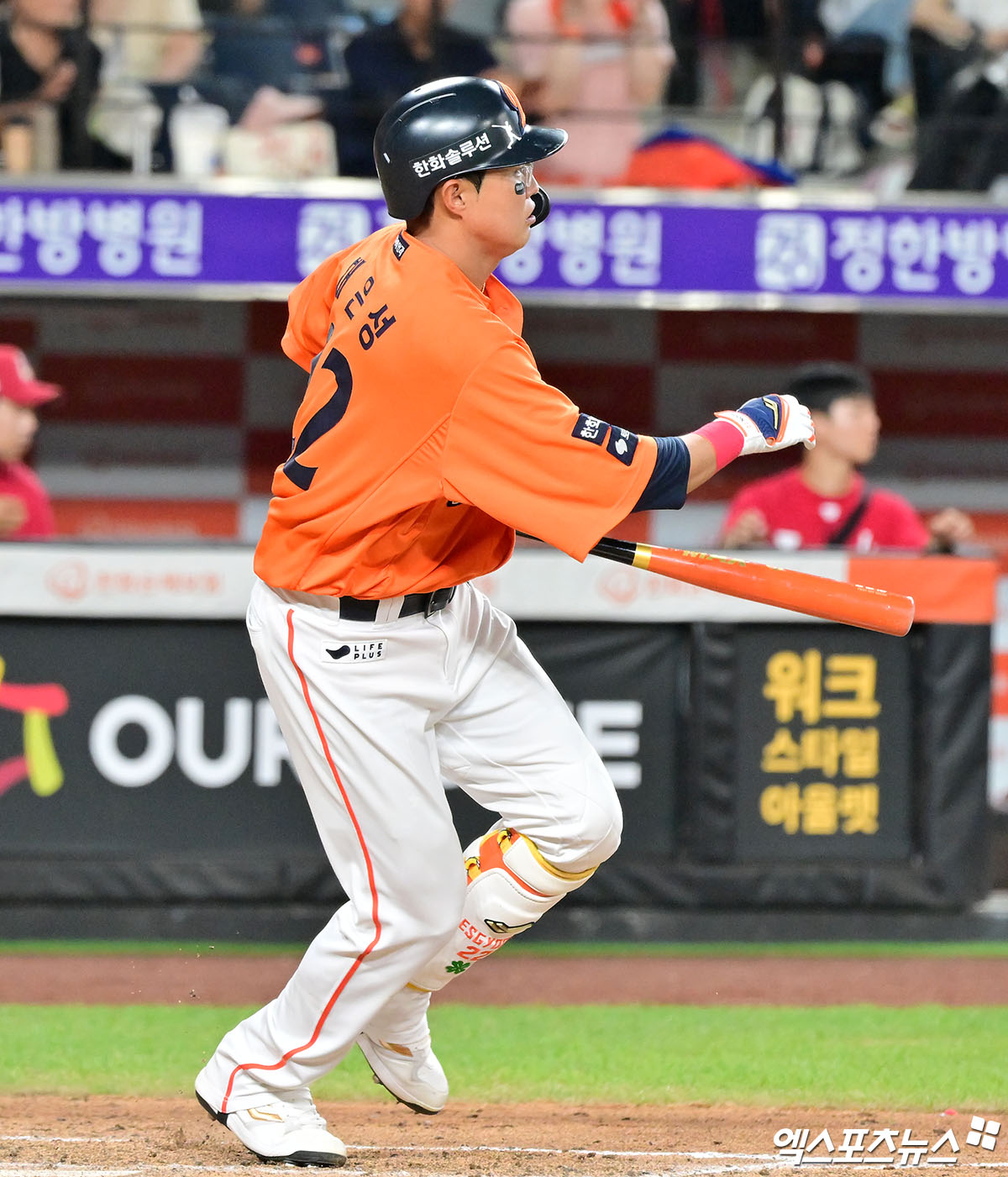 (엑스포츠뉴스 대전, 김한준 기자) 23일 오후 대전 한화생명 볼파크에서 열린 '2025 신한 SOL Bank KBO리그' SSG 랜더스와 한화 이글스의 경기, 8회말 무사 만루 한화 채은성이 2타점 적시타를 날리고 있다.