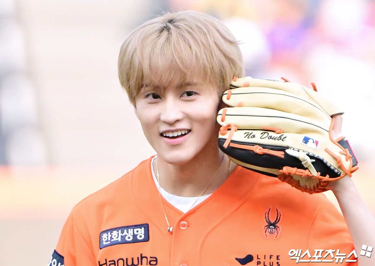 (엑스포츠뉴스 대전, 김한준 기자) 23일 오후 대전 한화생명 볼파크에서 열린 '2025 신한 SOL Bank KBO리그' SSG 랜더스와 한화 이글스의 경기, 경기 전 NCT 마크가 시구에 임하고 있다.