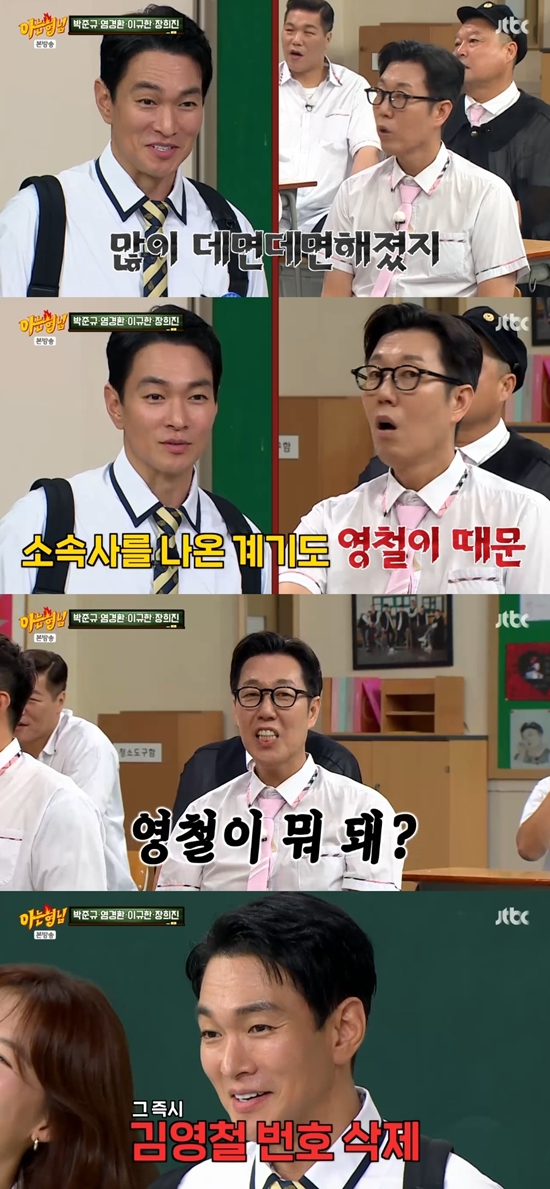 신동은 "내가 규한이가 영철이랑 친한 걸로 알고 있다"라고 밝혔다. 이규한은 "엄청 친했다가, 많이 데면데면해졌다. (영철이와) 같은 소속사였는데, 소속사를 나온 계기도 사실 영철이 때문이다"라고 고백했다.