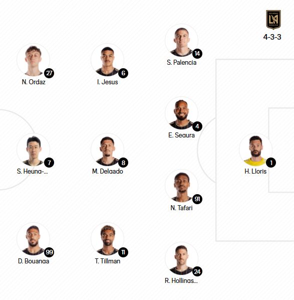 LAFC는 4-3-3 포메이션을 그대로 유지하며 손흥민 중심의 공격 전술을 가동한다.