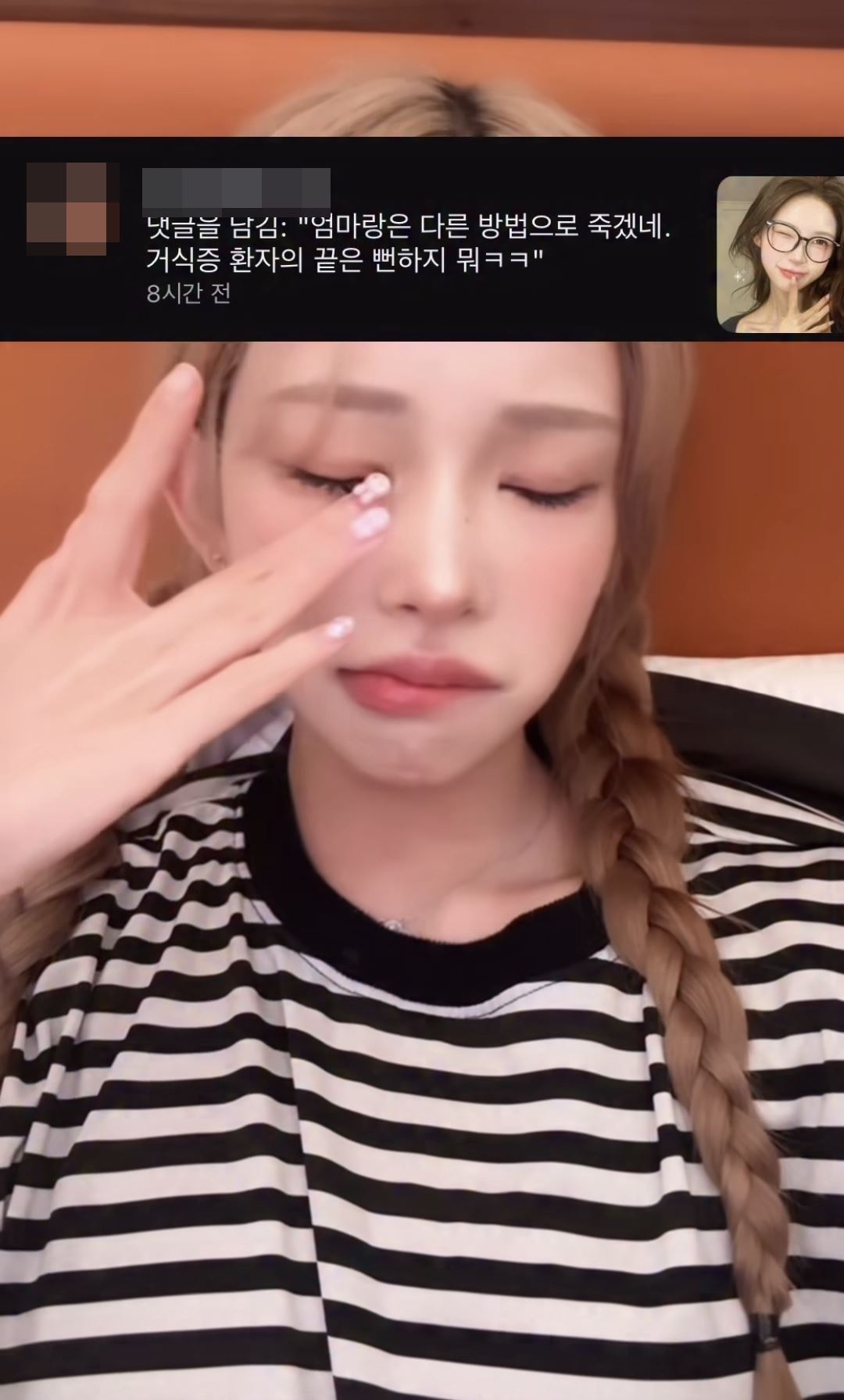 최준희는 24일 자신의 개인 채널을 통해 한 누리꾼의 악성 댓글을 공개했다. 악플러는 최준희에게 "엄마랑은 다른 방법으로 죽겠네. 거식증 환자의 끝은 뻔하지 뭐"라는 댓글을 남겼다.