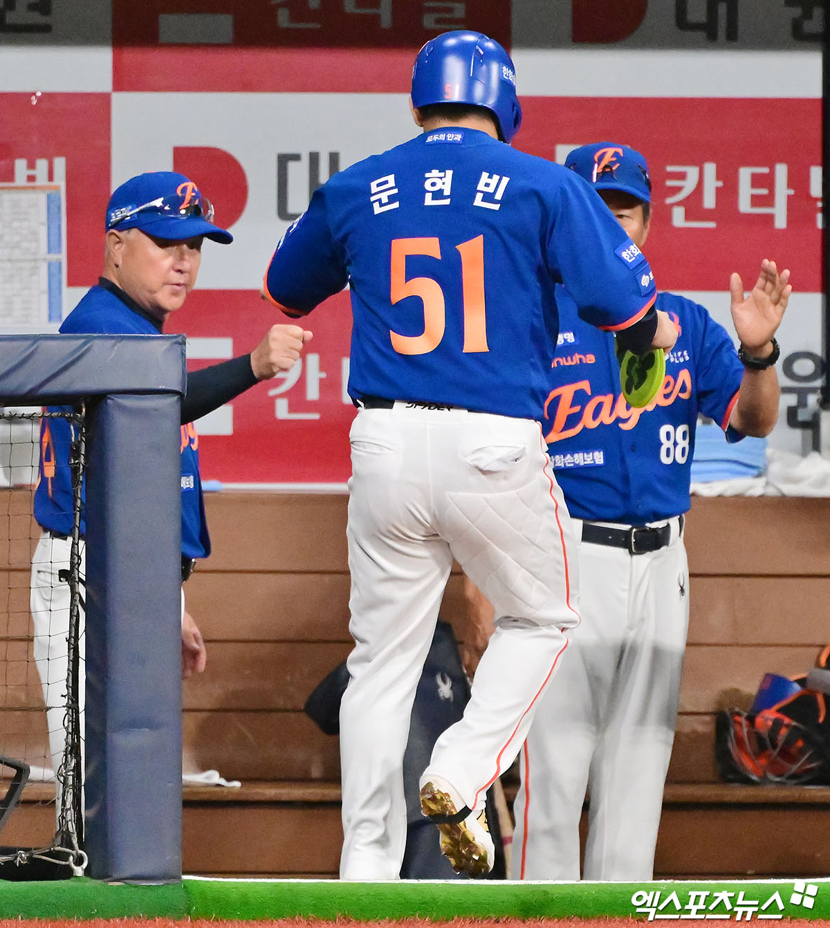 (엑스포츠뉴스 고척, 김한준 기자) 26일 오후 서울 구로구 고척스카이돔에서 열린 '2025 신한 SOL Bank KBO리그' 한화 이글스와 키움 히어로즈의 경기, 4회초 2사 2루 한화 문현빈이 노시환의 1타점 적시타때 득점에 성공하고 있다.