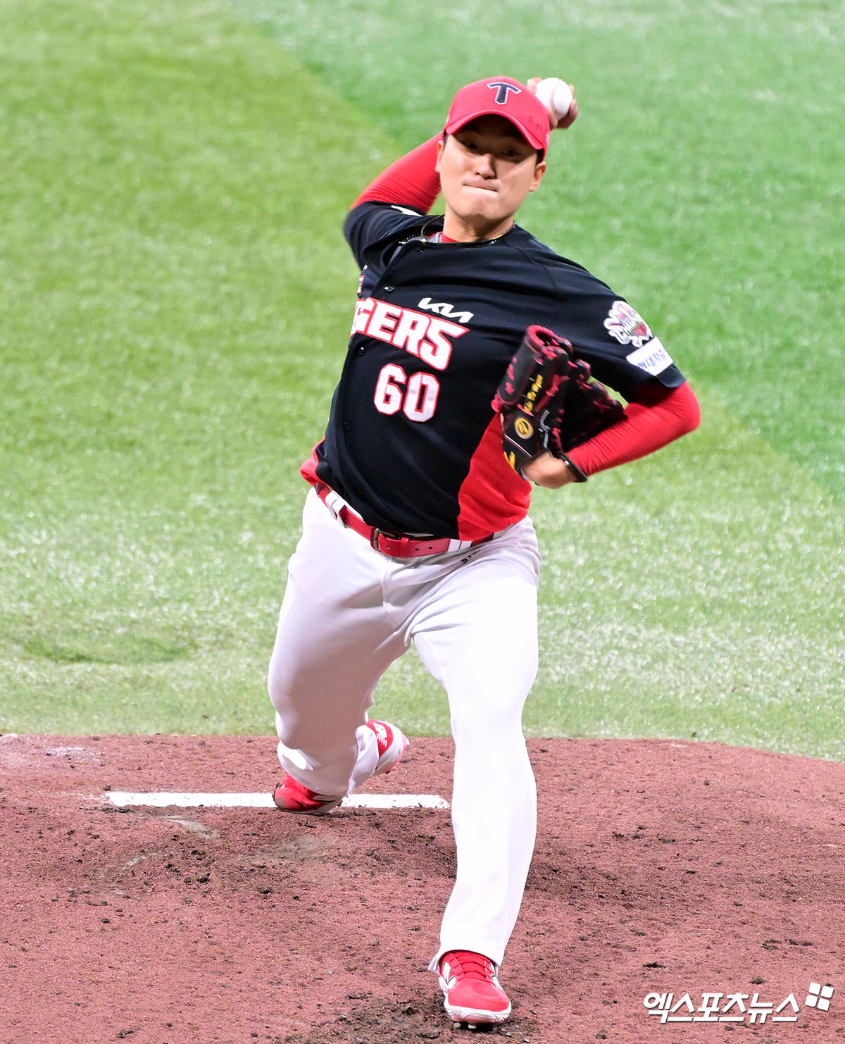 15일 오후 서울 송파구 잠실야구장에서 열린 '2025 신한 SOL Bank KBO리그' KIA 타이거즈와 두산 베어스의 경기, 1회말 KIA 선발투수 김도현이 공을 힘차게 던지고 있다. 엑스포츠뉴스 DB