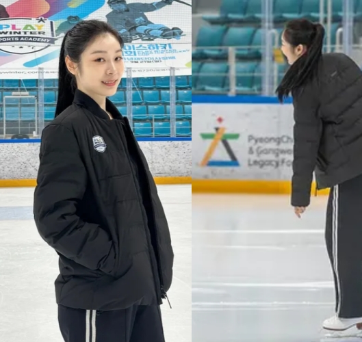 공개된 사진 속 김연아는 올 블랙 운동복을 갖춰 입은 것과 대비되는 흰 스케이트화를 신고 빙판 위에 서 있어 현역 시절을 떠오르게 한다.