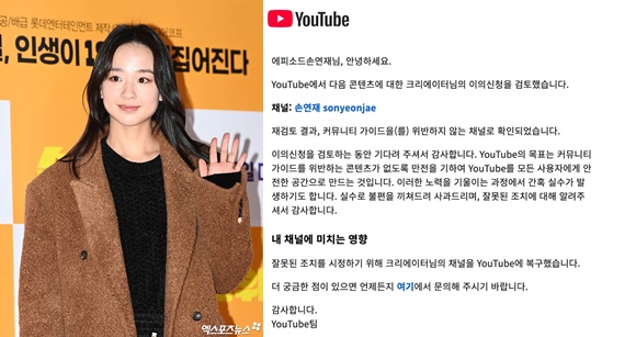 12일 오전, 손연재의 채널은 정상적으로 복구됐다. 제작진은  "즉시 상황을 확인하고 유튜브에 이의신청을 제출했다"며 재검토 과정을 거쳐 채널이 복구됐다고 전했다.