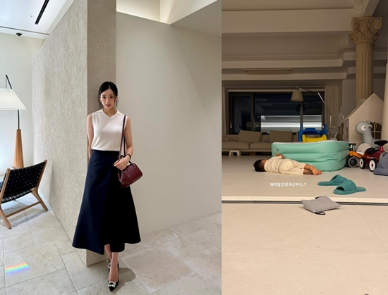 사진 속에는 바닥에 누운 손연재의 아들과 장난감이 흩어져 있는 거실 풍경이 담겨 있다. 육아의 고단함과 동시에 따뜻한 일상의 한 장면이 고스란히 느껴진다.