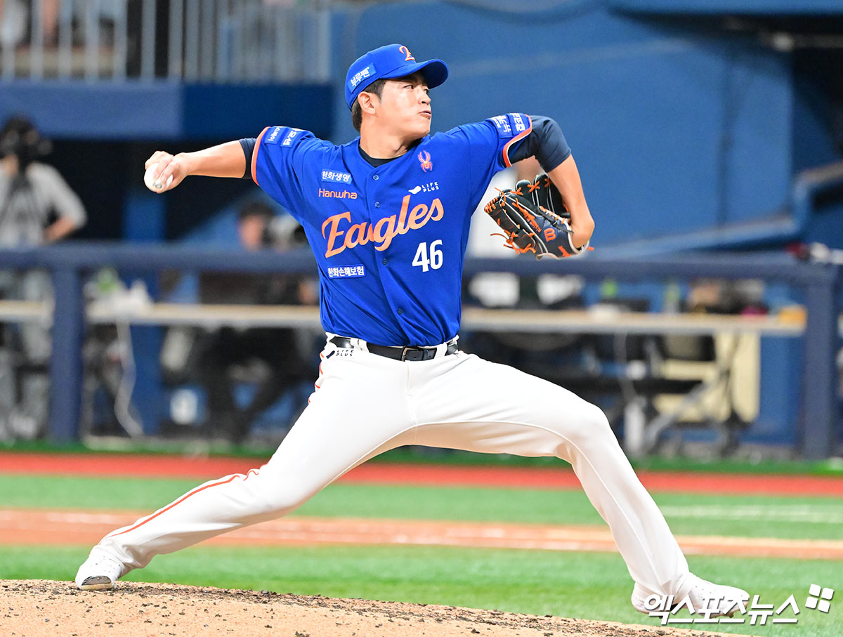 (엑스포츠뉴스 고척, 김한준 기자) 28일 오후 서울 구로구 고척스카이돔에서 열린 '2025 신한 SOL Bank KBO리그' 한화 이글스와 키움 히어로즈의 경기, 8회말 한화 이태양이 공을 힘차게 던지고 있다.