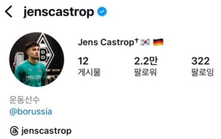 (엑스포츠뉴스 권동환 기자) 대한민국 축구 역사상 첫 국외 출생 혼혈 태극전사인 옌스 카스트로프(보루시아 묀헨글라드바흐)가 자신의 사회관계망서비스(SNS) 프로필에서 독일 국기를 지웠다.