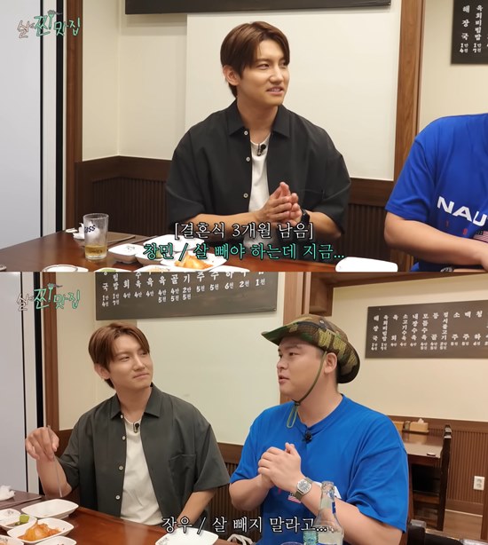 이외에도 결혼을 준비하는 동안 생긴 일화에 대해서도 공개했다. 결혼식이 3개월 남은 시점에서 살을 안 빼냐고 묻는 최강창민에게 이장우는 "여자 친구가 빼지 말라 그랬어"라며 의외의 대답을 보였다.