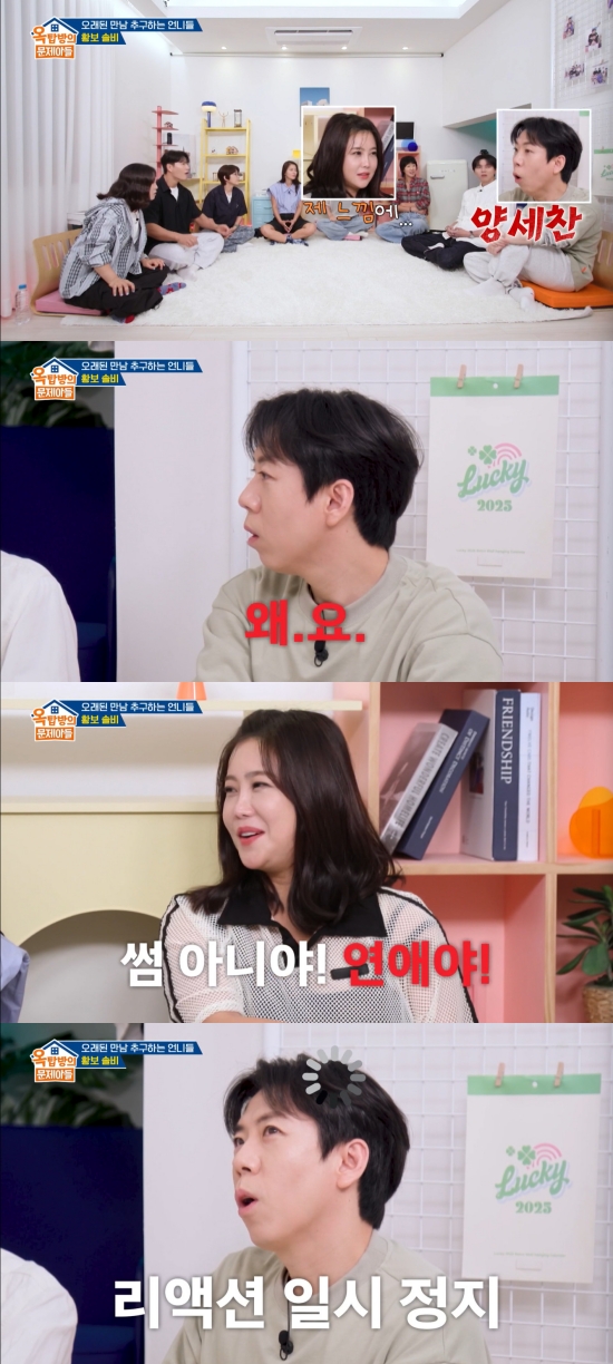 이어 솔비는 "이거는 그냥 제 느낌인데 연애를 하고 있다는 확신이 드는 분이 있다. 저는 양세찬 씨"라며 시선을 돌렸다. 양세찬은 크게 놀란 듯 "왜요?"라고 반응했고, 다른 MC들은 "잡았다, 걸렸다 네 이놈"이라며 즐거워했다.