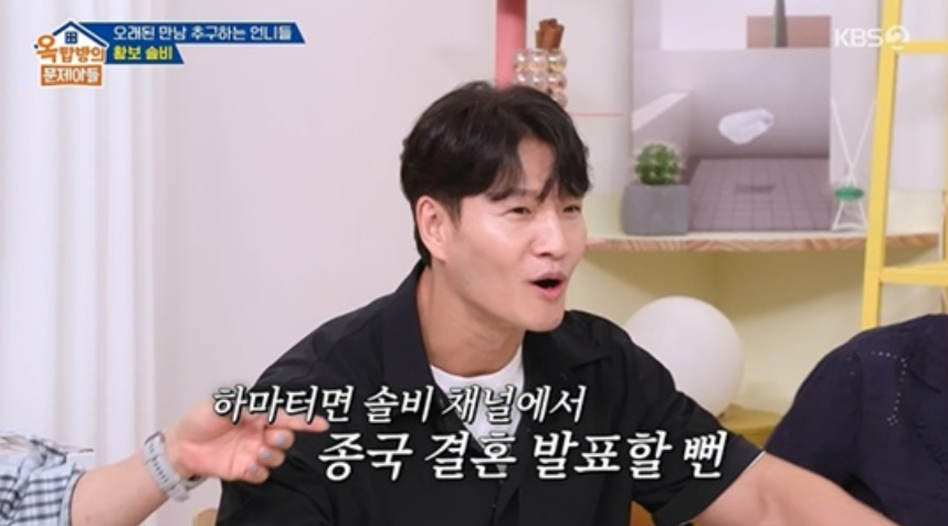 방송에서 김숙은 평소 연애 촉이 좋다고 정평이 난 솔비에게 "나 이 방에 (결혼 유무가) 궁금한 사람이 있다"며 "나 얘(김종국) 궁금해"라고 콕 집었다.