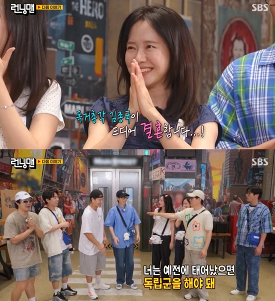 이후 김종국은 지난 24일 방송된 SBS '런닝맨'을 통해 결혼을 공식 발표했다. 15년을 동고동락한 '런닝맨' 멤버들조차 그의 결혼 소식을 몰랐던 가운데 지석진은 "넌 예전에 태어났으면 독립군 했어야 한다. 입을 다물고 직전까지 말을 안 한다"며 배신감을 내비치기도.