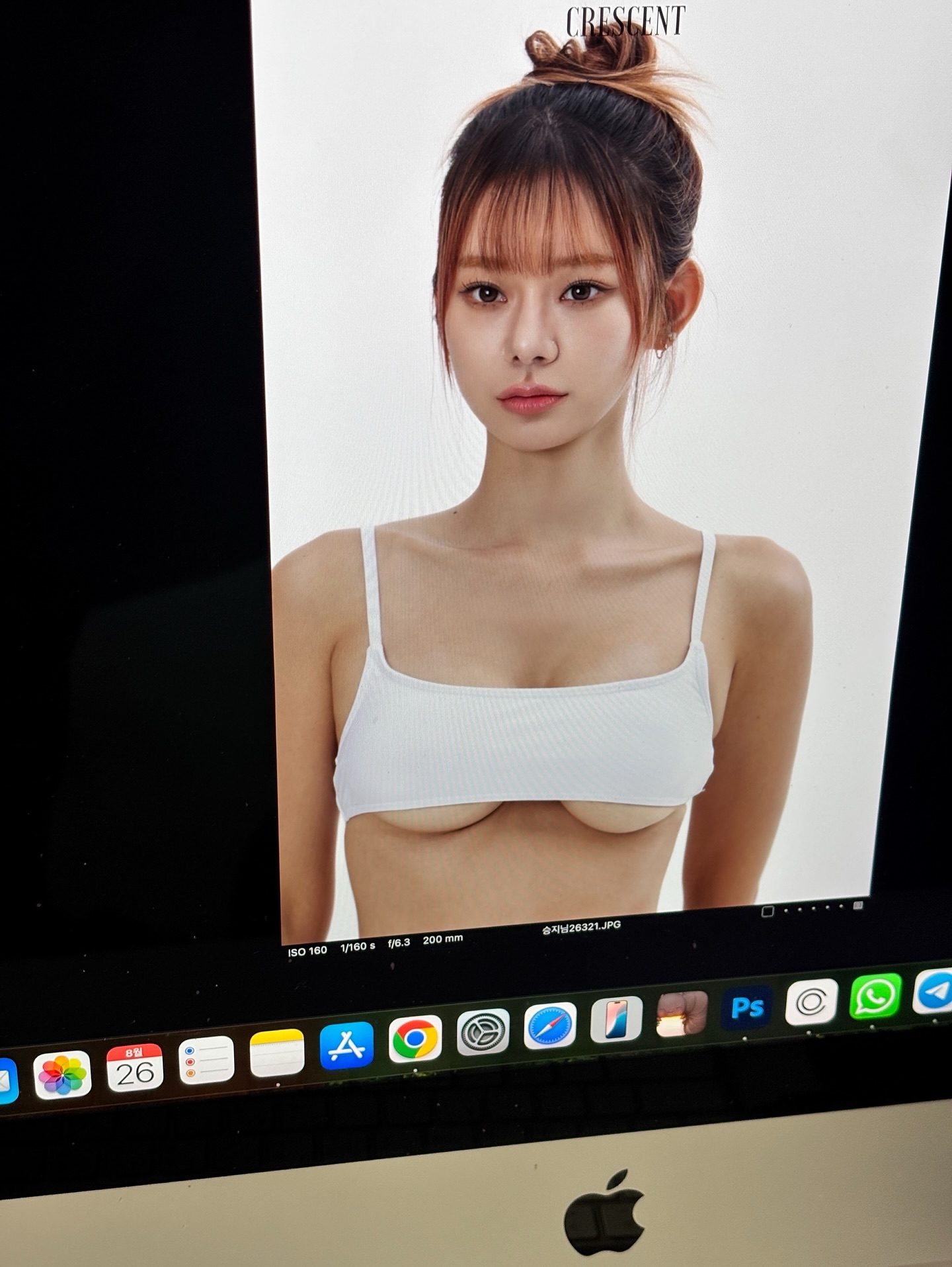 공개된 사진 속 맹승지는 흰색 언더붑 비키니를 입고서 메이크업을 받는 모습이다.