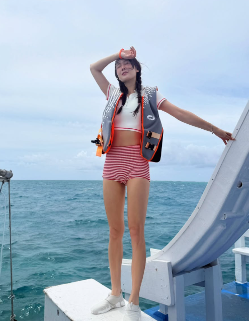사진 속 소유는 괌에서 물놀이를 즐기며 여유로운 시간을 보내고 있다.