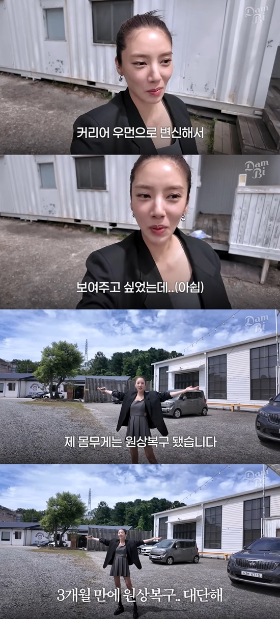 손담비는 구독자들에게 "일하는 모습 너무 오랜만에 보죠? 드디어 제 몸무게는 원상복구 됐다. 저는 이 착장으로 MC를 하고, 끝나면 딸을 보러 가겠다"라며 관리에 성공한 근황을 알렸다. 이에 제작진은 자막으로 "3개월 만에 원상복구 대단하다"라고 감탄했다.