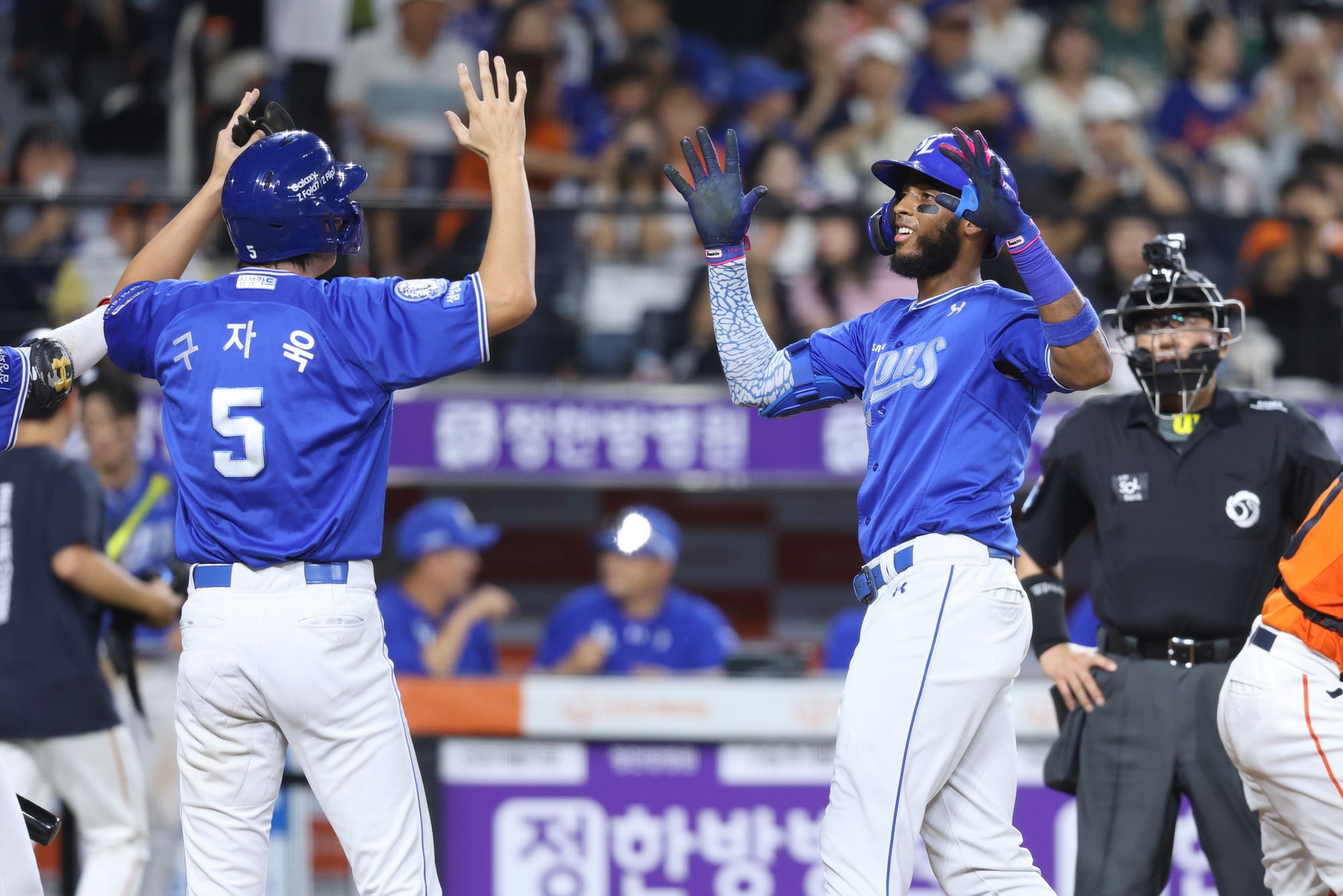 이어진 1사 2루에서 디아즈가 우중간 적시타를 추가하며 삼성이 2-0으로 앞서나갔다.