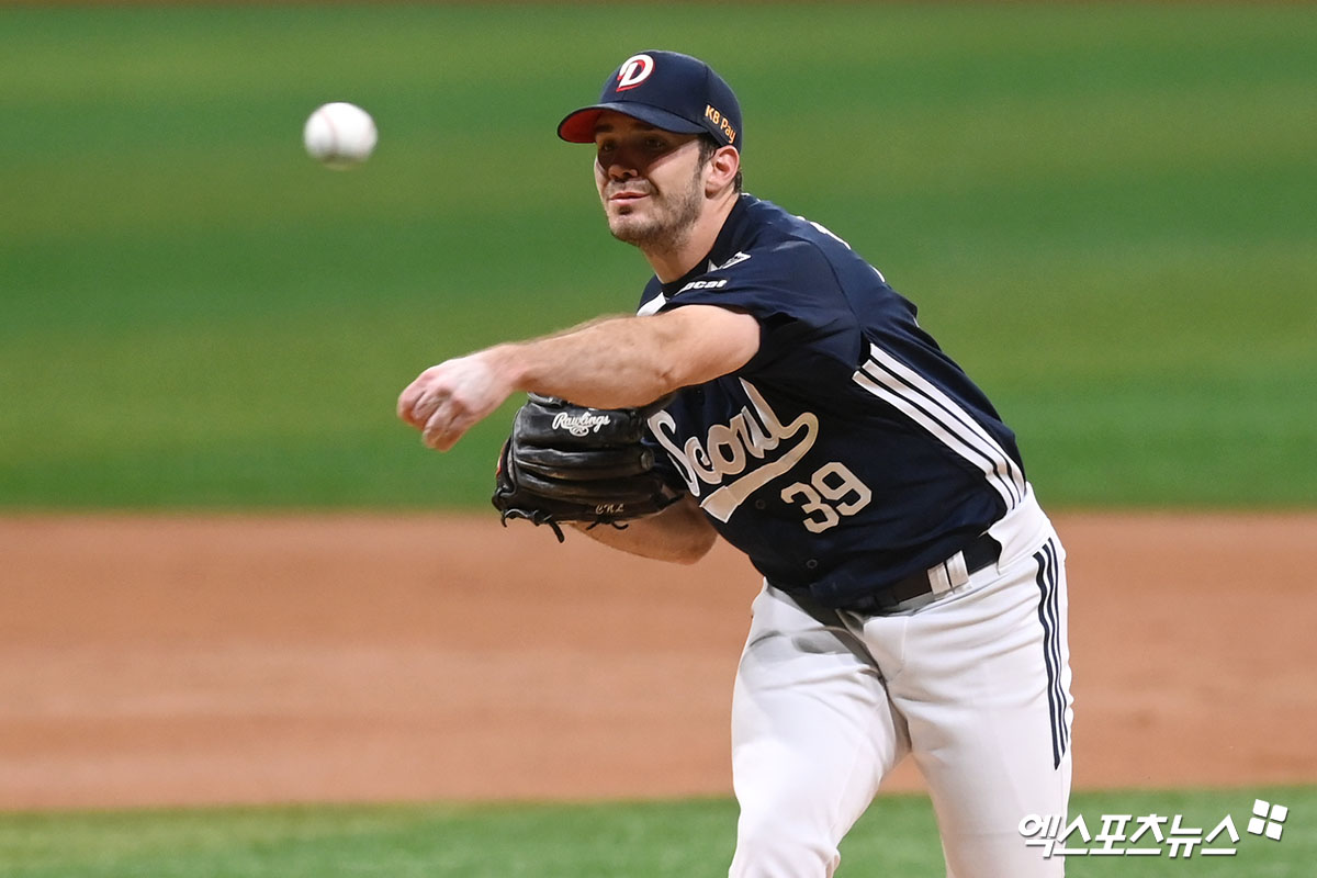 두산은 5회초 기다렸던 추가 득점을 만들었다. 두산은 5회초 1사 뒤 양의지의 좌중간 2루타로 만든 2사 2루 기회에서 김인태가 중견수 뒤로 넘어가는 1타점 적시 3루타를 때려 5-0까지 도망갔다. 이어진 2사 3루 기회에선 박계범이 헛스윙 삼진으로 물러났다.