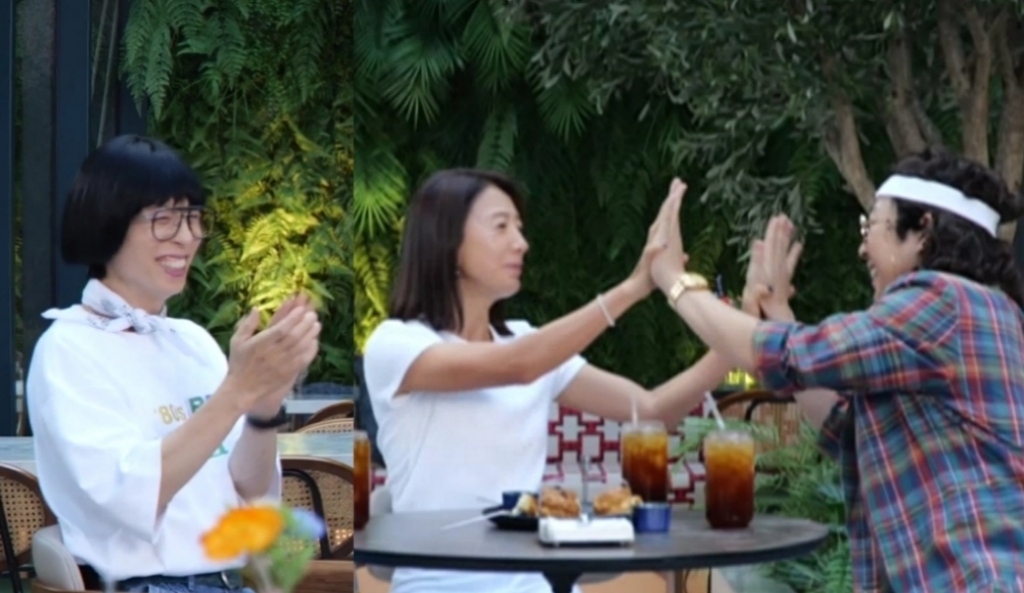 이런 가운데 유재석 옆에서 알콩달콩 둘만의 세계에 빠진 김희애와 하하의 모습이 과연 무슨 대화를 하고 있는지 궁금증을 자극한다. 하하는 김희애의 특급 하이파이브와 칭찬을 받으며 기뻐하고 있고, 김희애도 하하의 칭찬에 즐거워하는 표정이다.