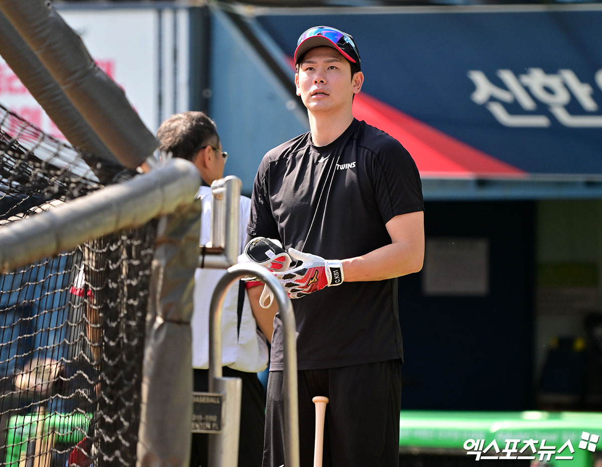 (엑스포츠뉴스 잠실, 김한준 기자) 30일 오후 서울 송파구 잠실야구장에서 열리는 '2025 신한 SOL Bank KBO리그' 키움 히어로즈와 LG 트윈스의 경기, LG 홍창기가 훈련에 임하고 있다.